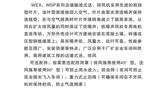 首页 > 产品信息 > 风机 > WEX、WSP边墙式风机